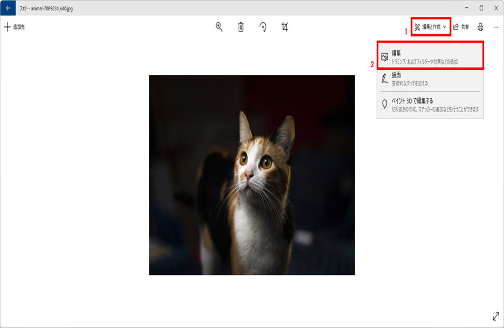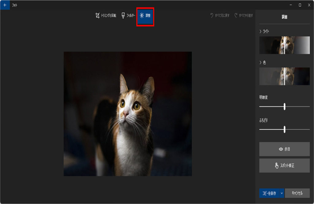 Windows11のアプリ、フォトで画像の明るさと色調を編集する方法