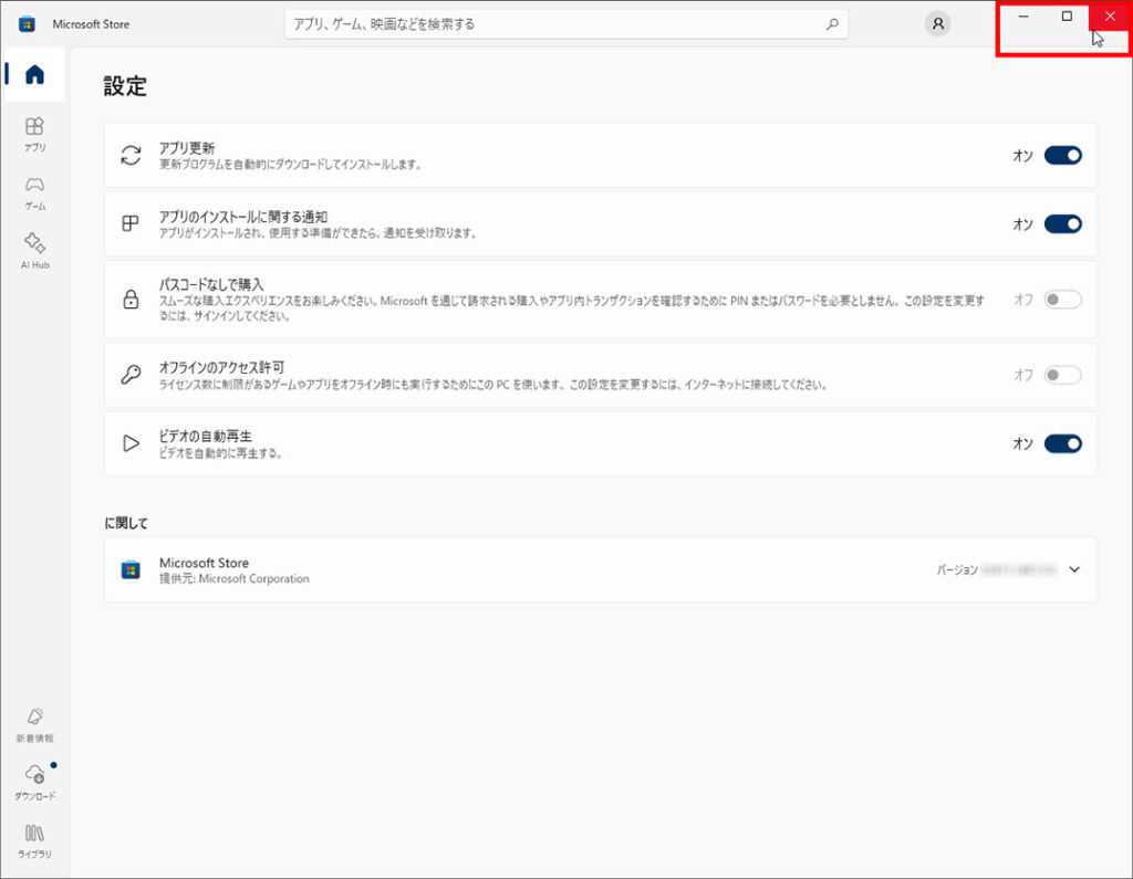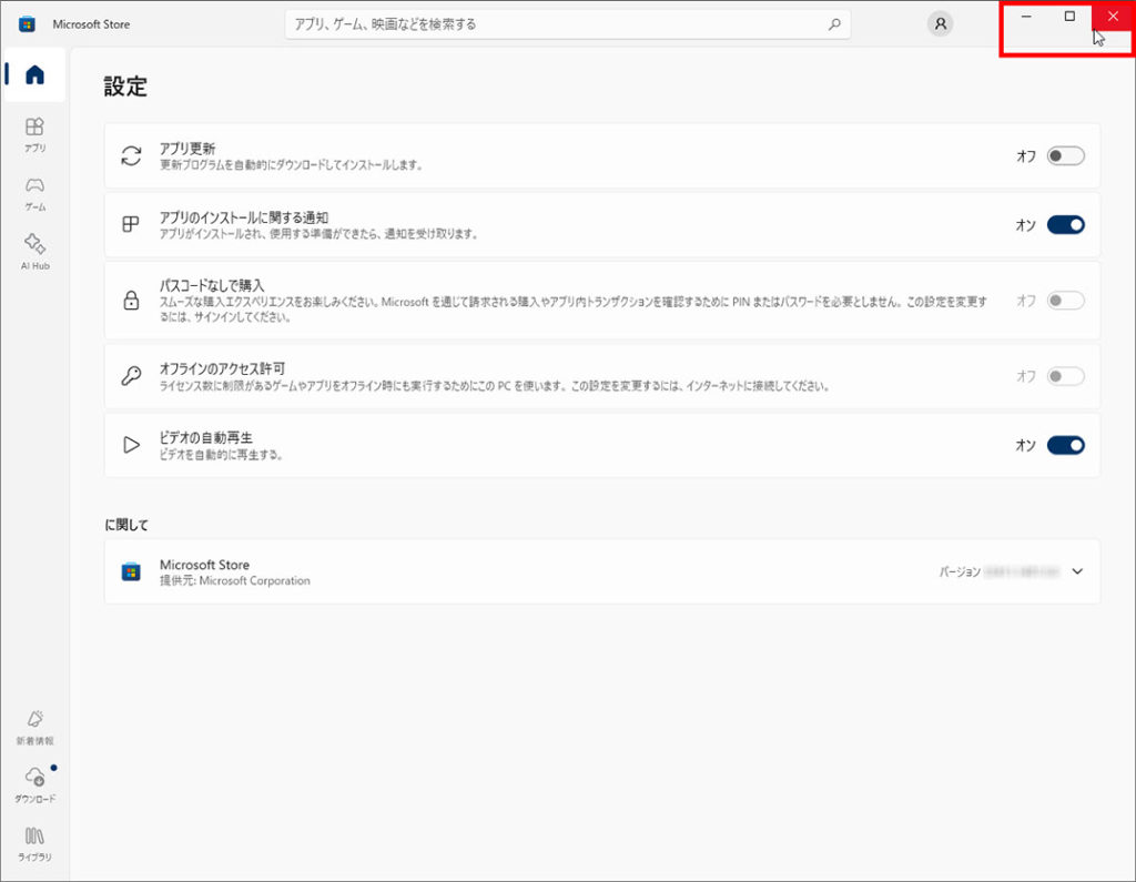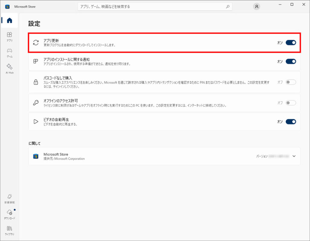 ※下記にMicrosoft Storeアプリの自動更新を設定する方法の別記事もあります。