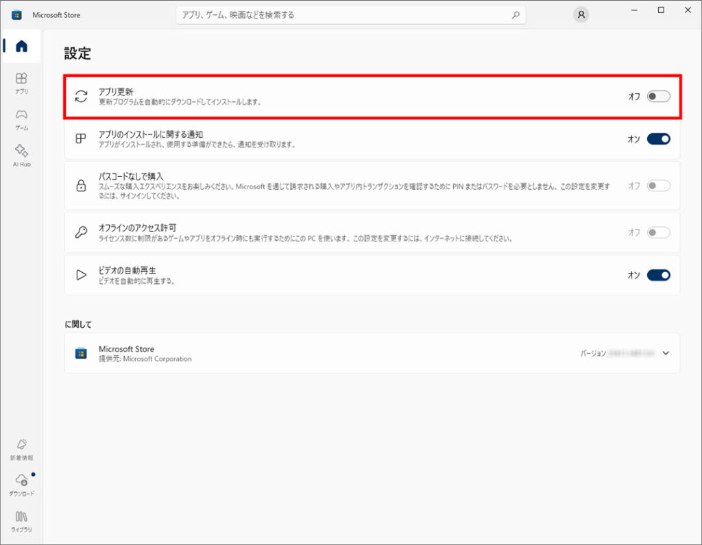 Microsoft Storeアプリを自動更新しない