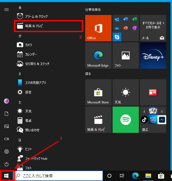 2 すべてのアプリの「映画&テレビ」をクリックします。