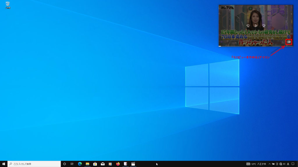 再生された時に、右下の「ミニビューで再生」アイコンをクリックします。