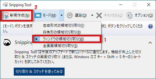 Windows10のSnipping Toolでウィンドウ画面を指定