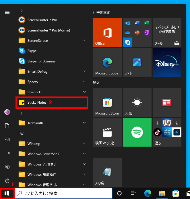 2 すべてのアプリの「Sticky Notes」をクリックします。