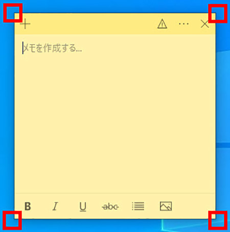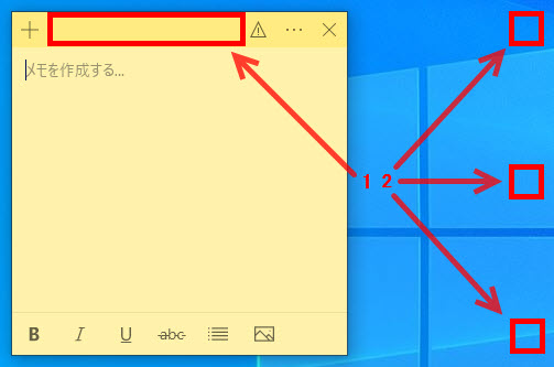 アプリの付箋(Sticky Notes)は様々な位置に移動、大きさなどを変更することができます、