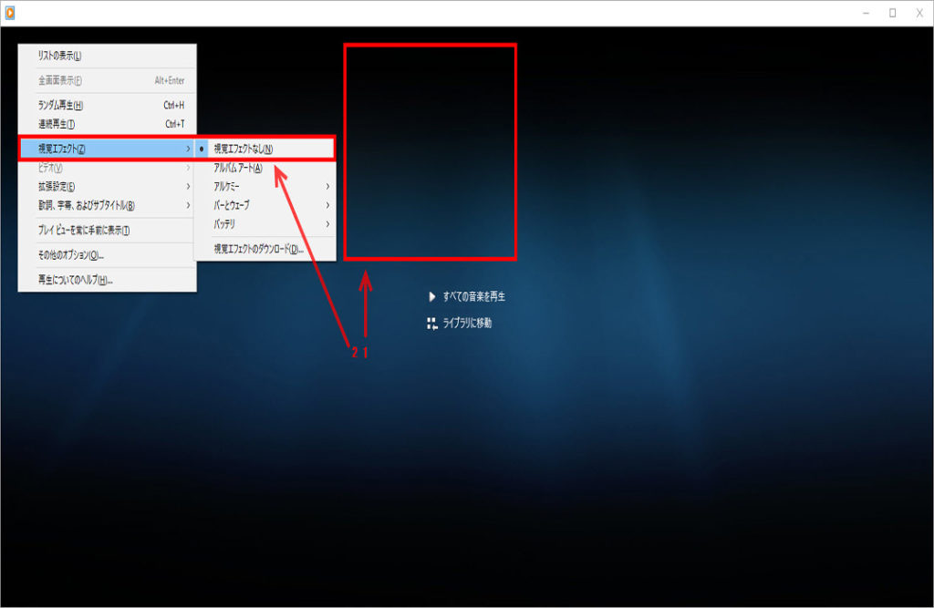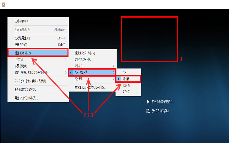 ※下記にWindows Media Player従来版で視覚エフェクトを切り替える方法の