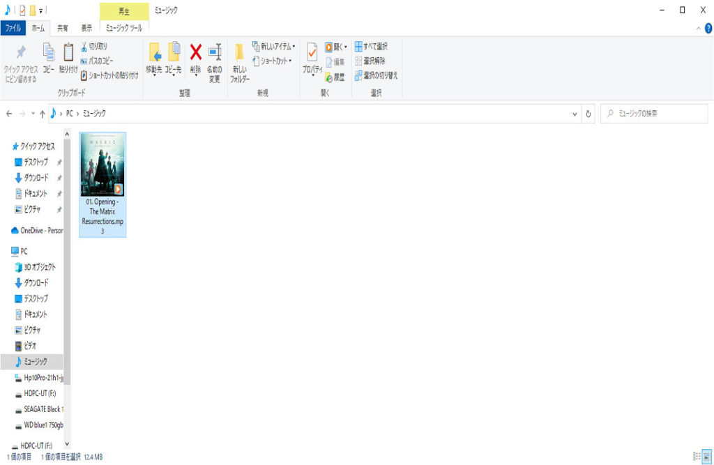 例として、ミュージックフォルダーの音楽ファイルを再生します。