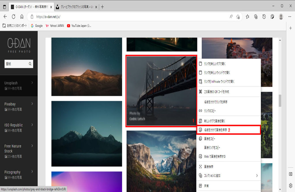 Microsoft EdgeなどのブラウザーでWebページの画像、写真、イラストを