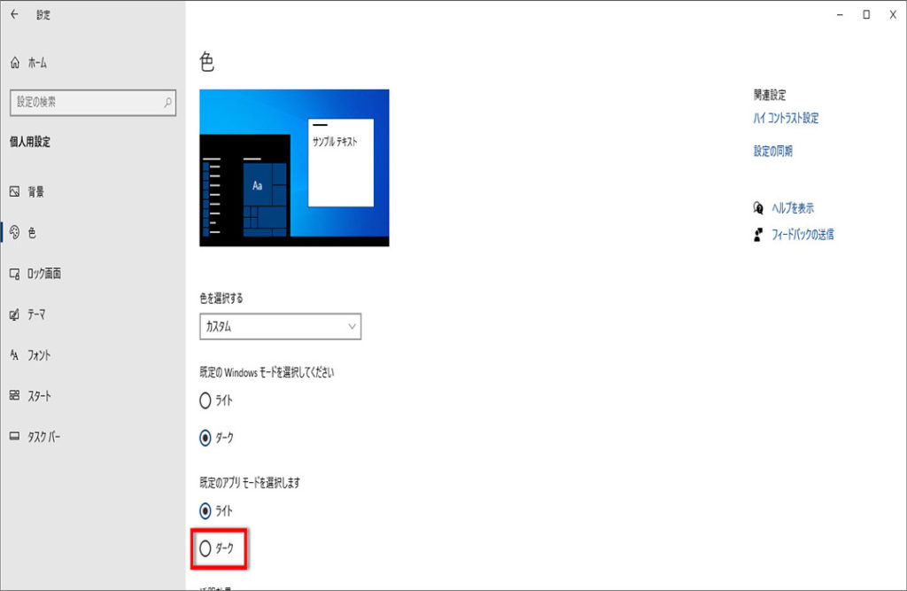 Windows10はダークモードを設定することができます、エクスプローラー、設定、