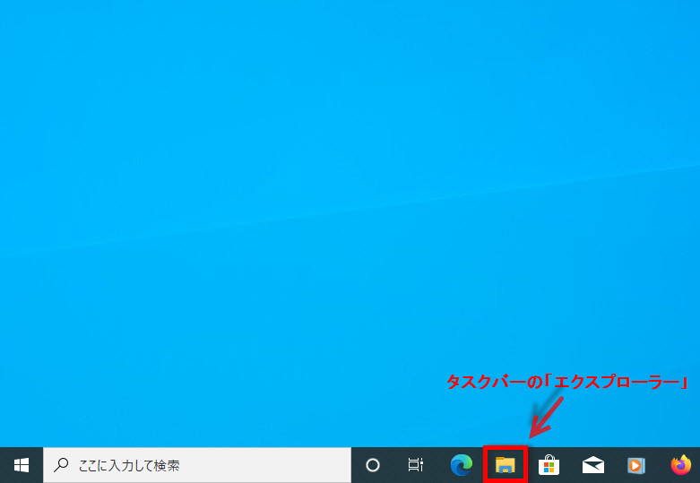 タスクバーの「エクスプローラー」ボタンをクリックします。