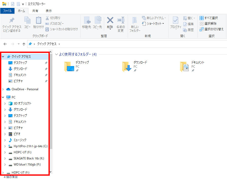 エクスプローラーは、パソコン内のハードディスク、SSD、外付けハードディスク、