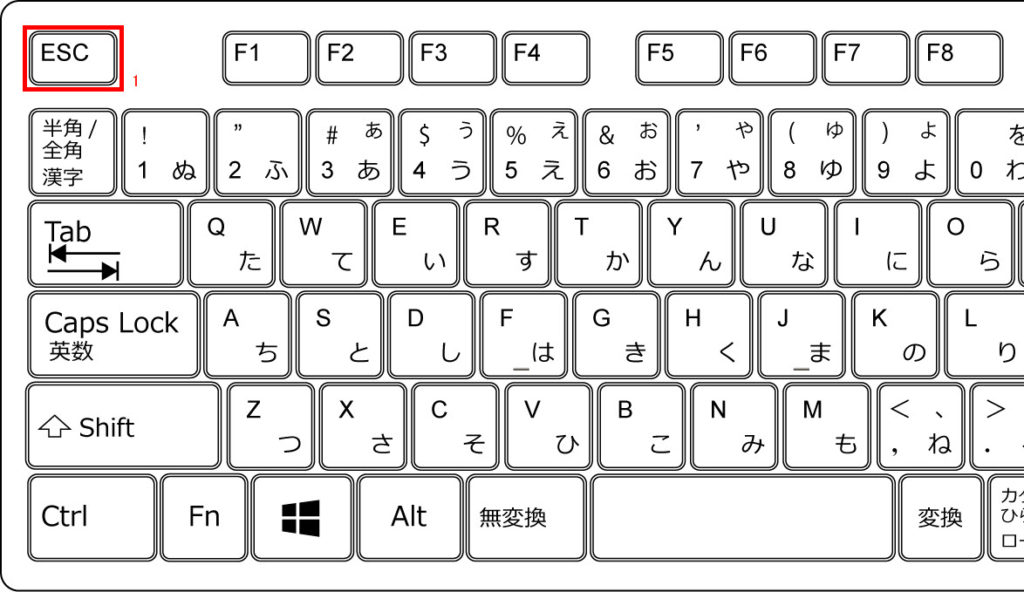 1 「ESC」キーを2~3秒間押下(長押し)して、偽警告を閉じるようにします。
