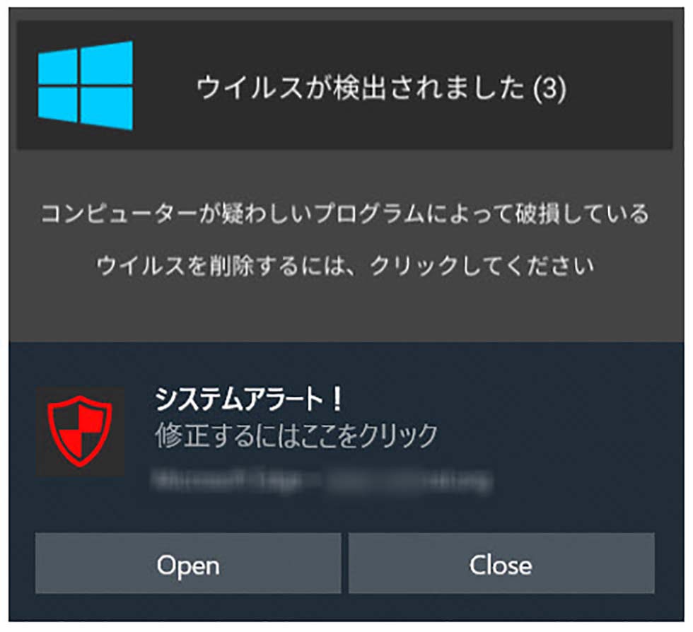 1 偽画面に表示されている「OK」ボタン「更新」ボタン「×」ボタンなどをクリックしない。