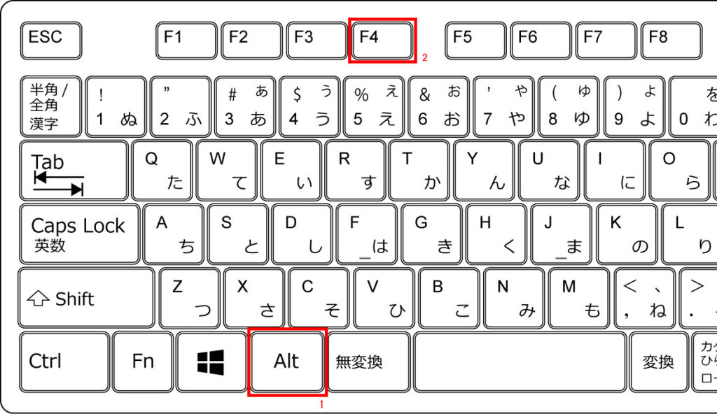 2 「F4」キーを押して偽警告画面を閉じてください。