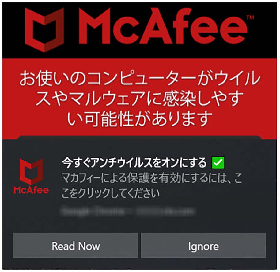 マイクロソフト、マカフィーなどの偽メッセージ画面