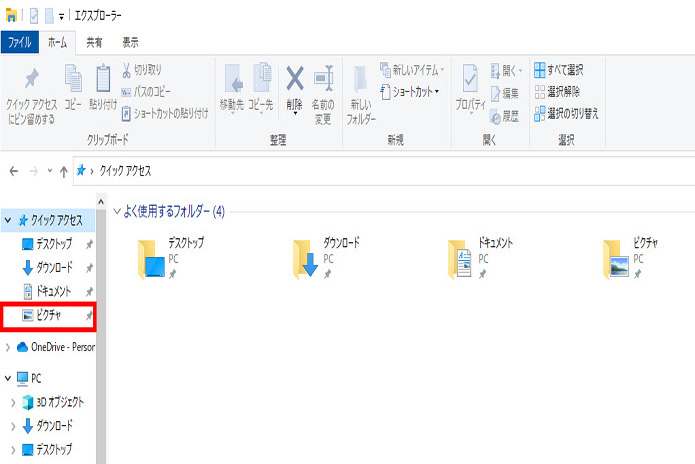左メニューのピクチャフォルダをクリックします。