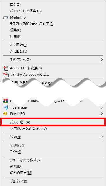 ※下記に「ファイル」「フォルダ」のパス(経路)をコピーする方法の別記事もあります。