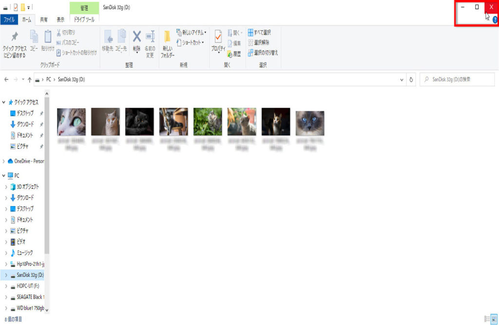 コピーが終われば、右上の「×」をクリックして閉じます、操作は以上です。