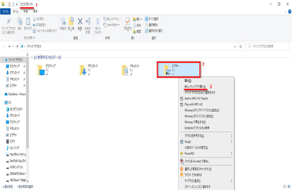 3 新しいウィンドウで開く(E)をクリックします。