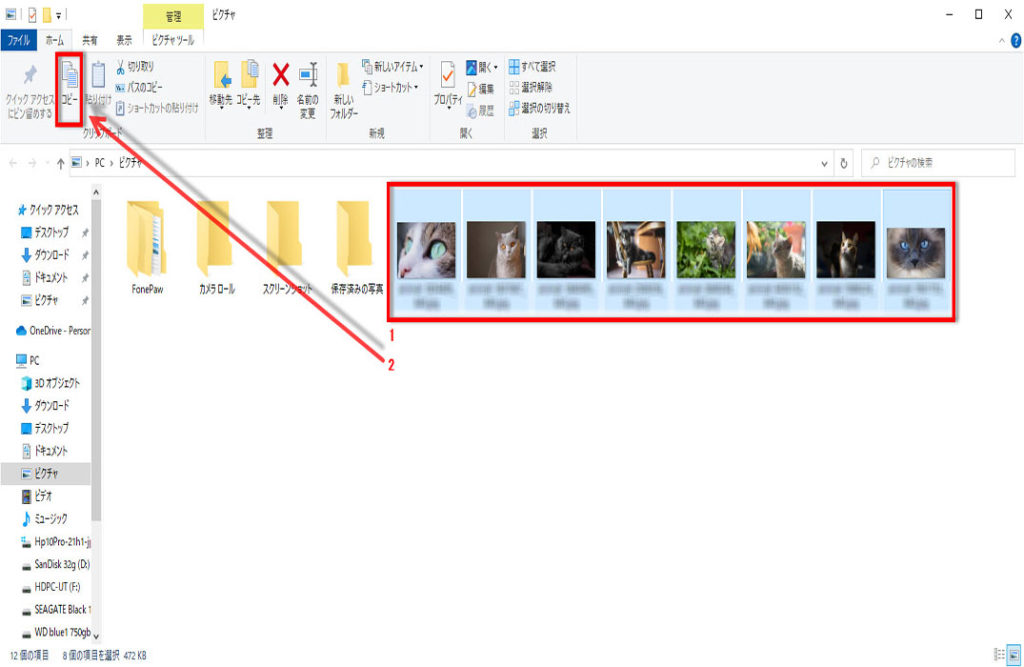 Windows10でUSBメモリーにデータをコピー
