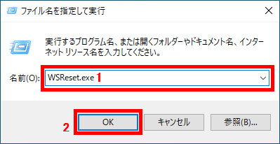 1 「WSReset.exe」と入力して、2 「OK」をクリックします。