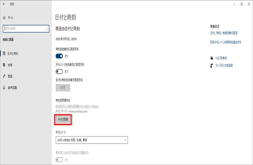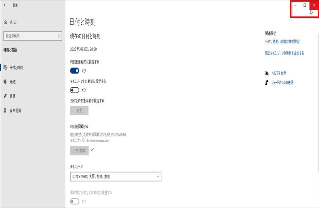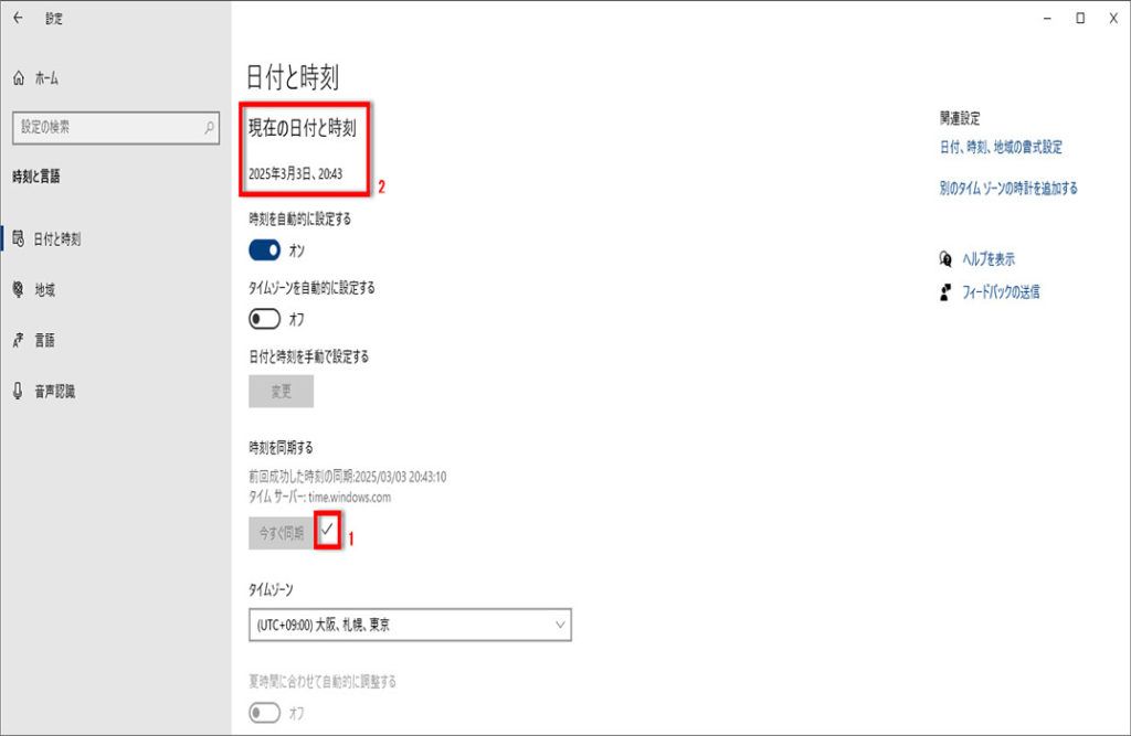 「日付と時刻」画面が表示されます「時刻を自動的に設定する」をチェックして