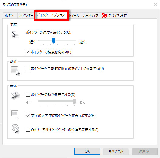 1 「ポインターオプション」タブ画面が表示されます、「速度」の