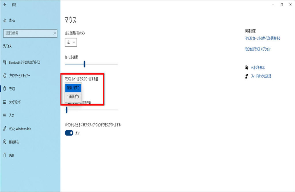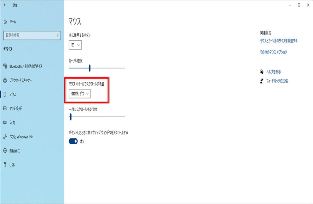 ここでは、マウスホイールのスクロール(移動量)を変更する方法について解説します。