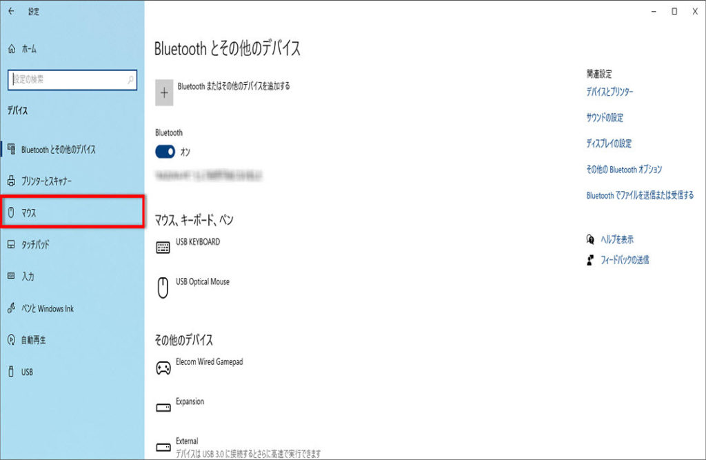 「デバイス」画面が表示されます「マウス」をクリックします。