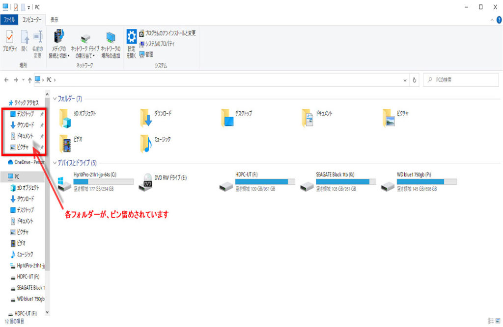 「クイックアクセス」が「PC」に変更されたことを確認しましょう。