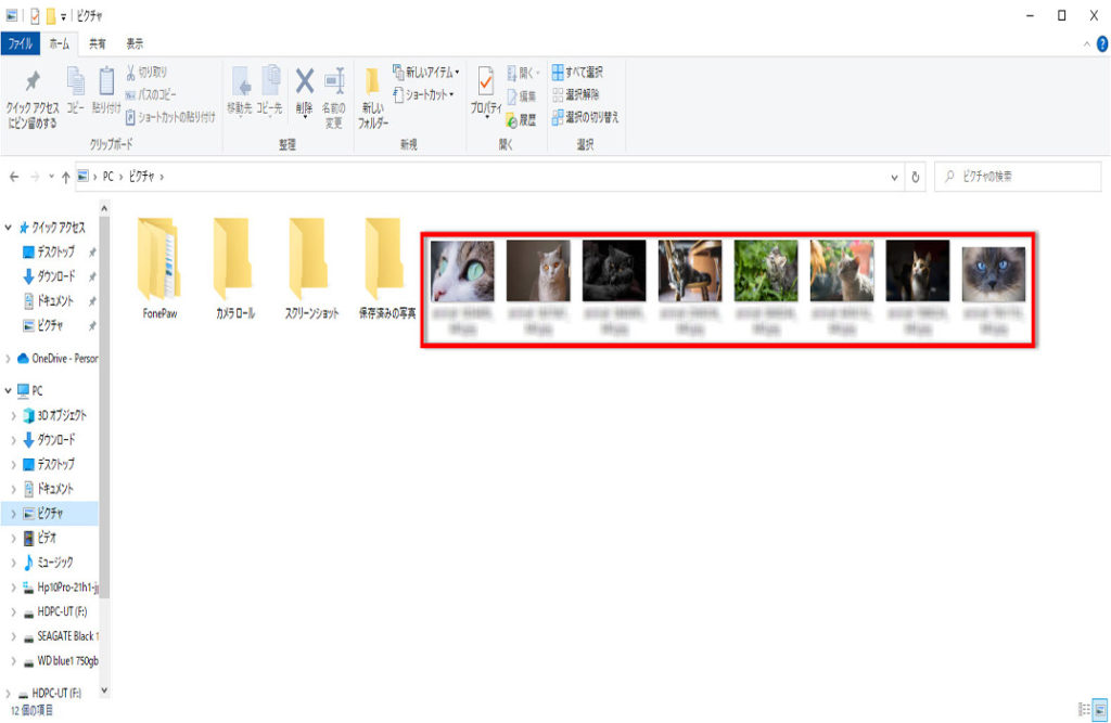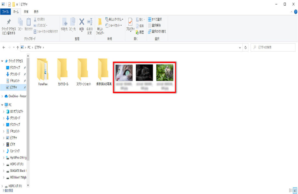 ピクチャフォルダーに、すべての画像ファイルが戻ります。