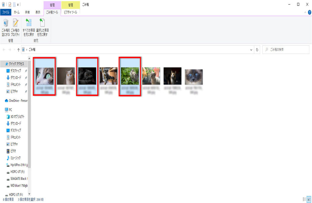 Windows11で「ごみ箱」に入れたファイルを選択して戻す方法