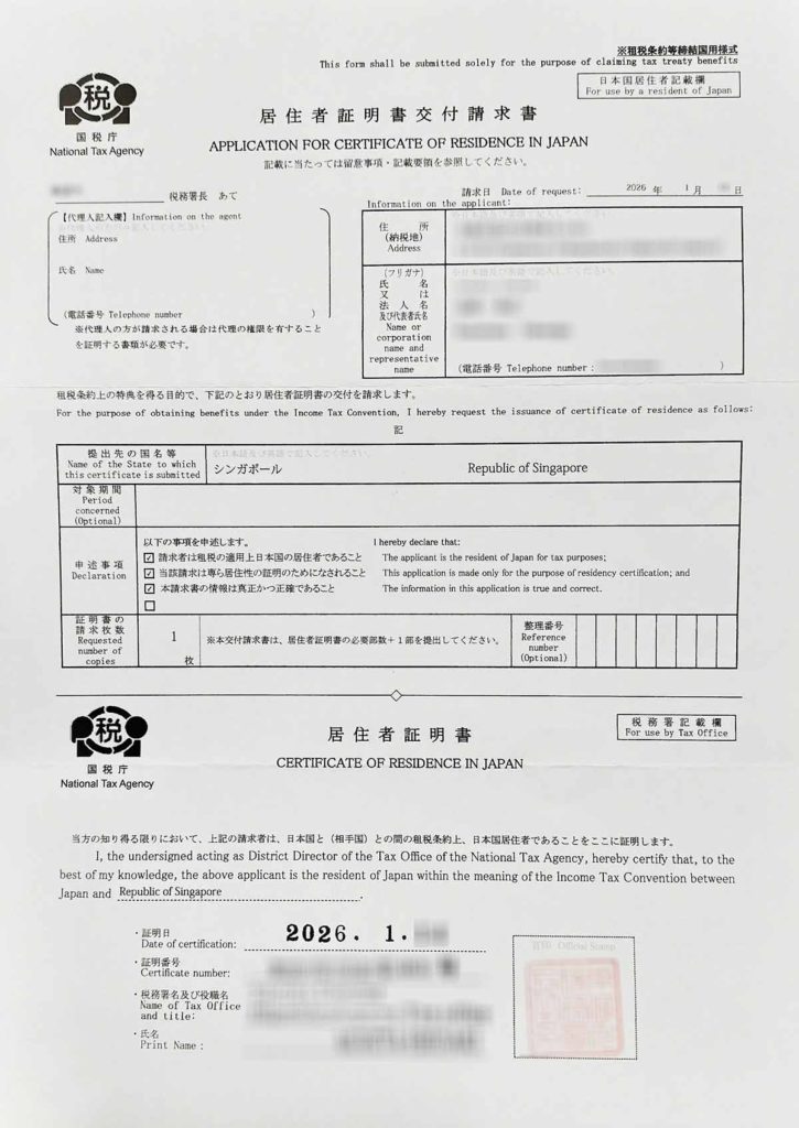 シンガポールに提出する税務情報は対象外で官印を押印してもらえます。