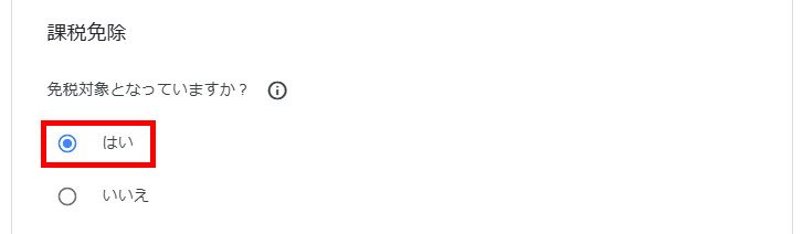 課税免除は「はい」の赤枠を選択。