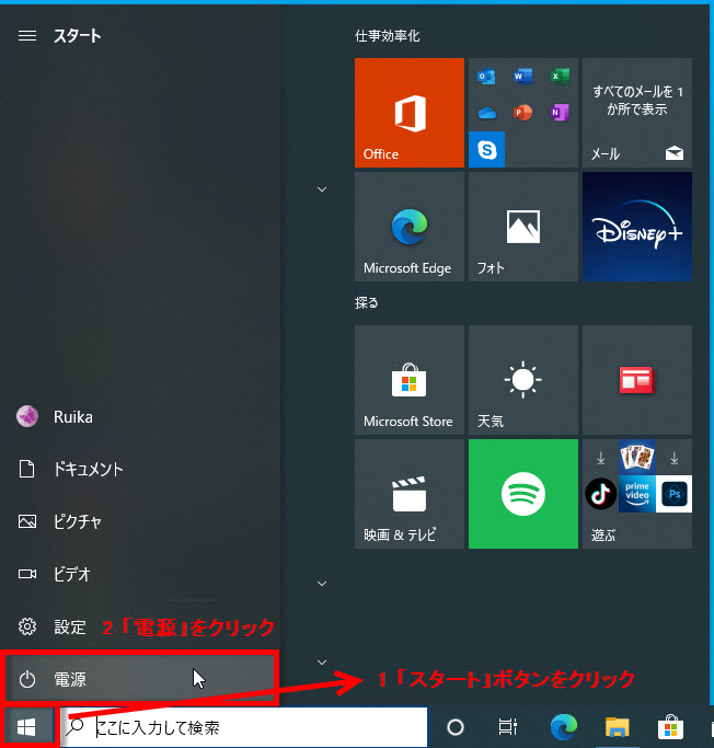 Windows10のパソコンをシャットダウンする方法