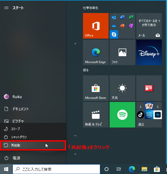 Windows10のパソコンを再起動する