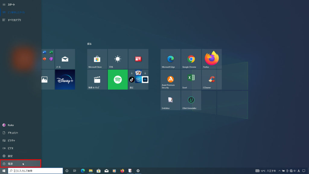 左下の電源ボタン