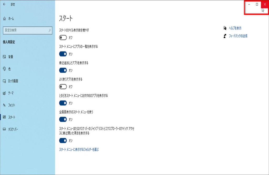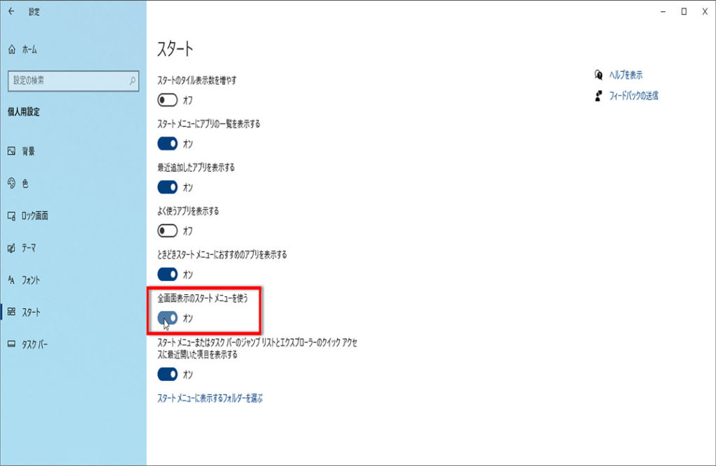 ここでは、スタート画面を全画面表示にする方法について解説します。