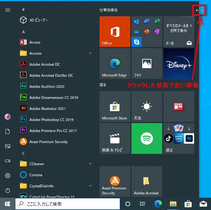 通常に戻したスタートメニューが大きくなりすぎた時の対処