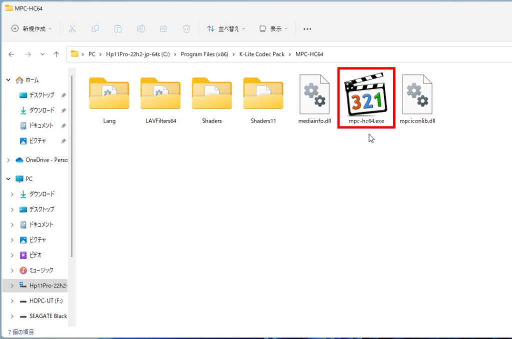 2 「C:\Program Files (x86)\K-Lite Codec Pack\MPC-HC64」フォルダに移動します、