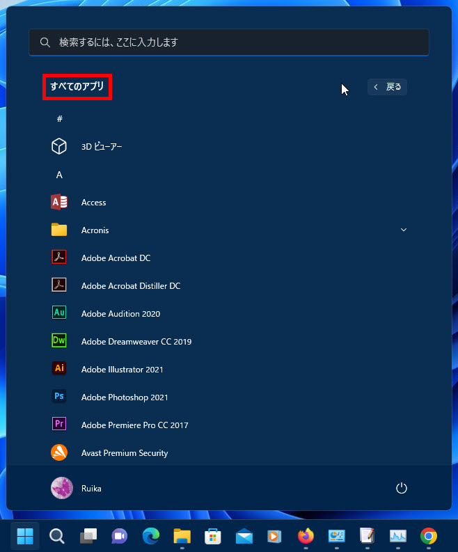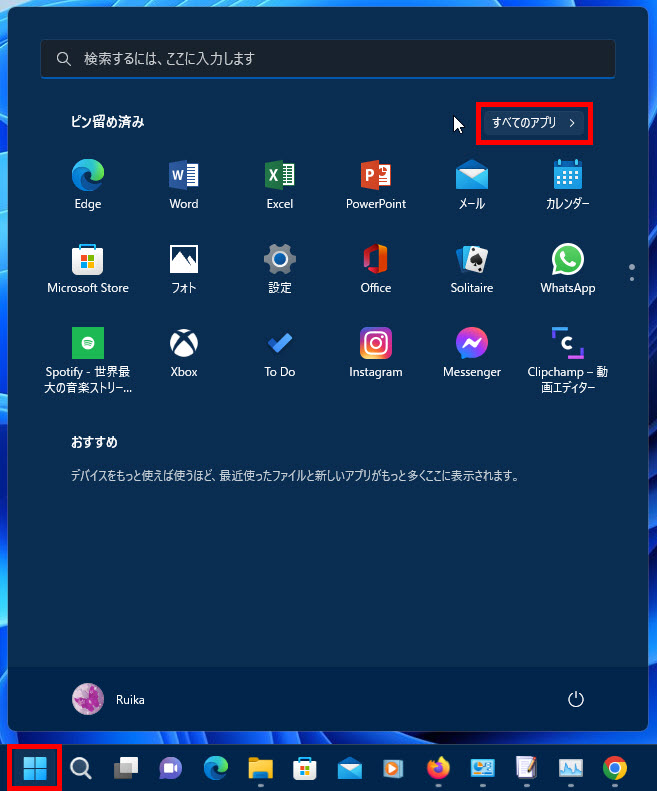 1 スタートボタン→2 すべてのアプリ→