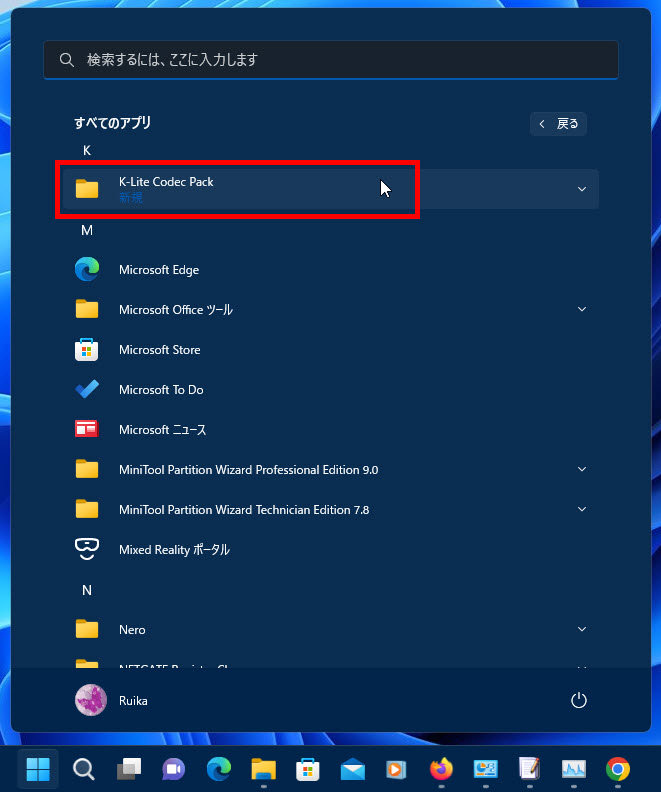 左下のK-Lite Codec Packの実行ファイルを確認します。