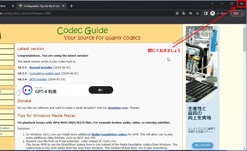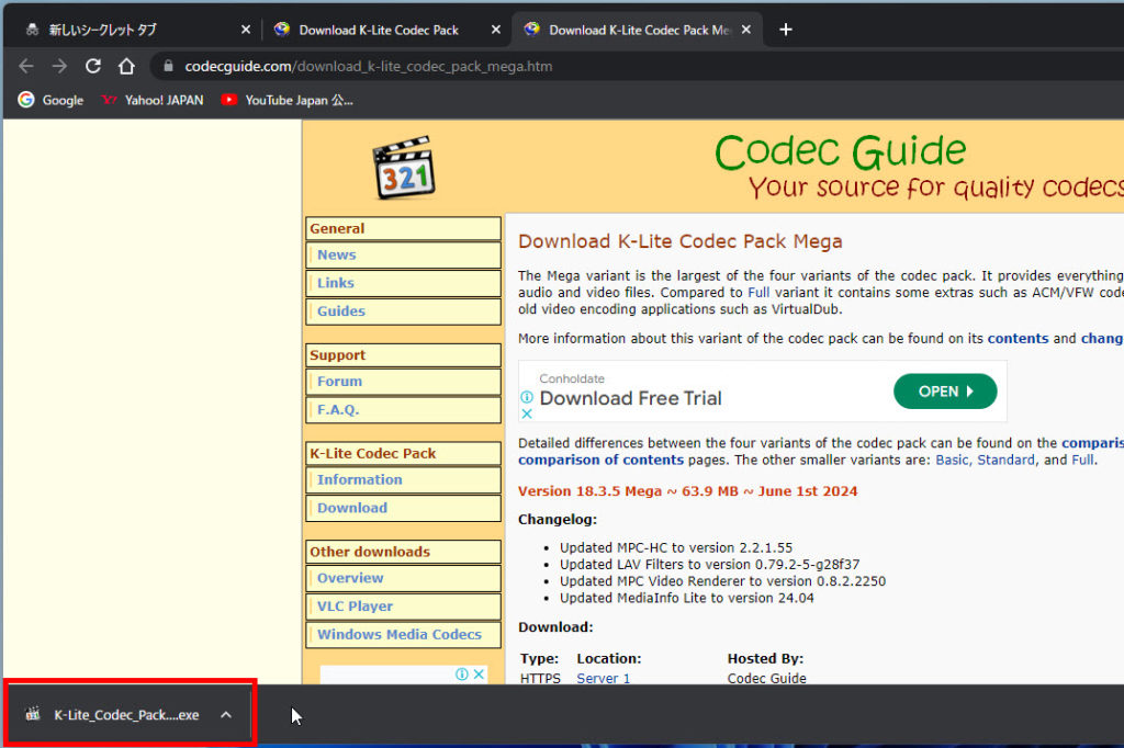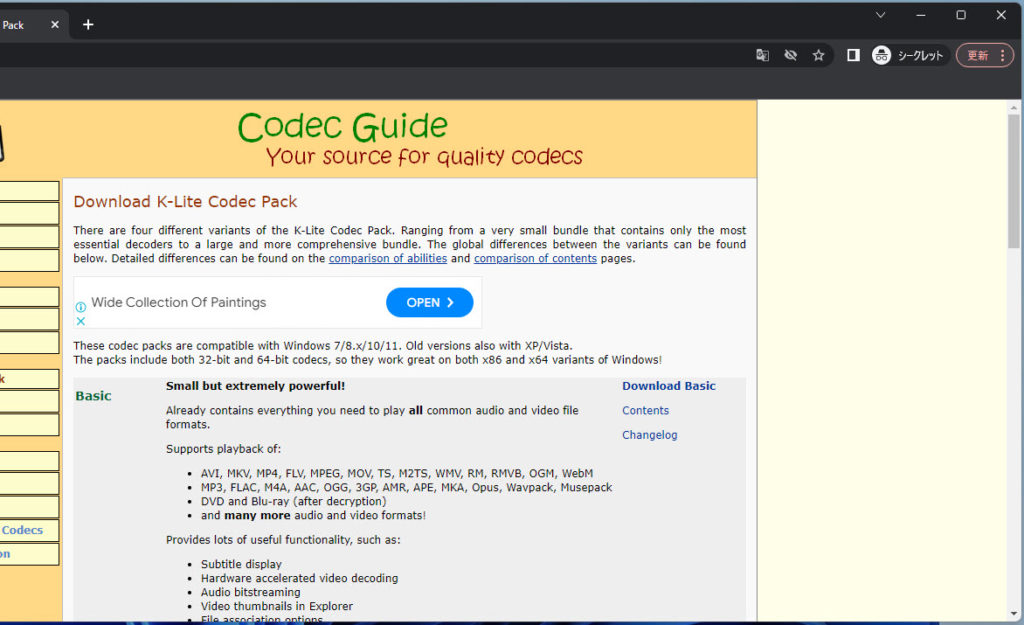 K-Lite Codec Packをダウンロード