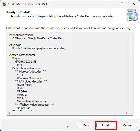 K-Lite Codec Packをインストール