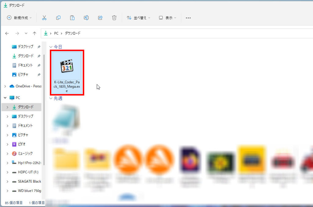 ダウンロードフォルダの「K-Lite_Codec_Pack_1835_Mega.exe」をダブルクリックして