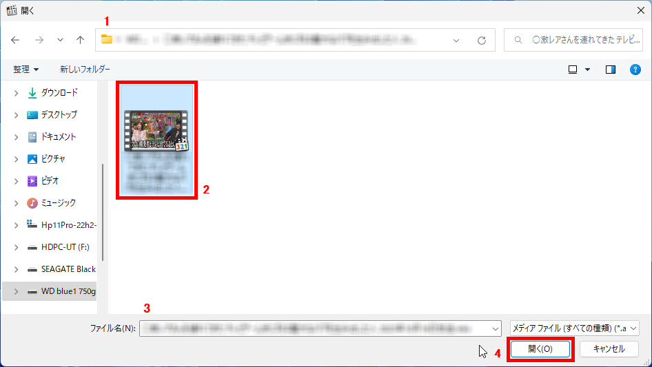 1 動画ファイルがあるフォルダを選択します。