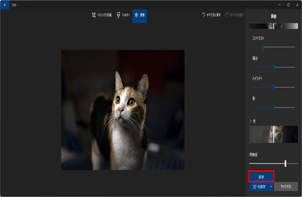 Windows10のアプリ、フォトで画像の明るさと色調を編集する方法
