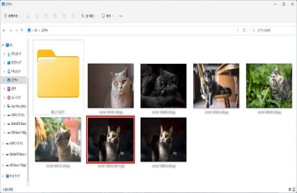 既定で「ピクチャ」フォルダー内が指定されますので編集する画像を選択します。