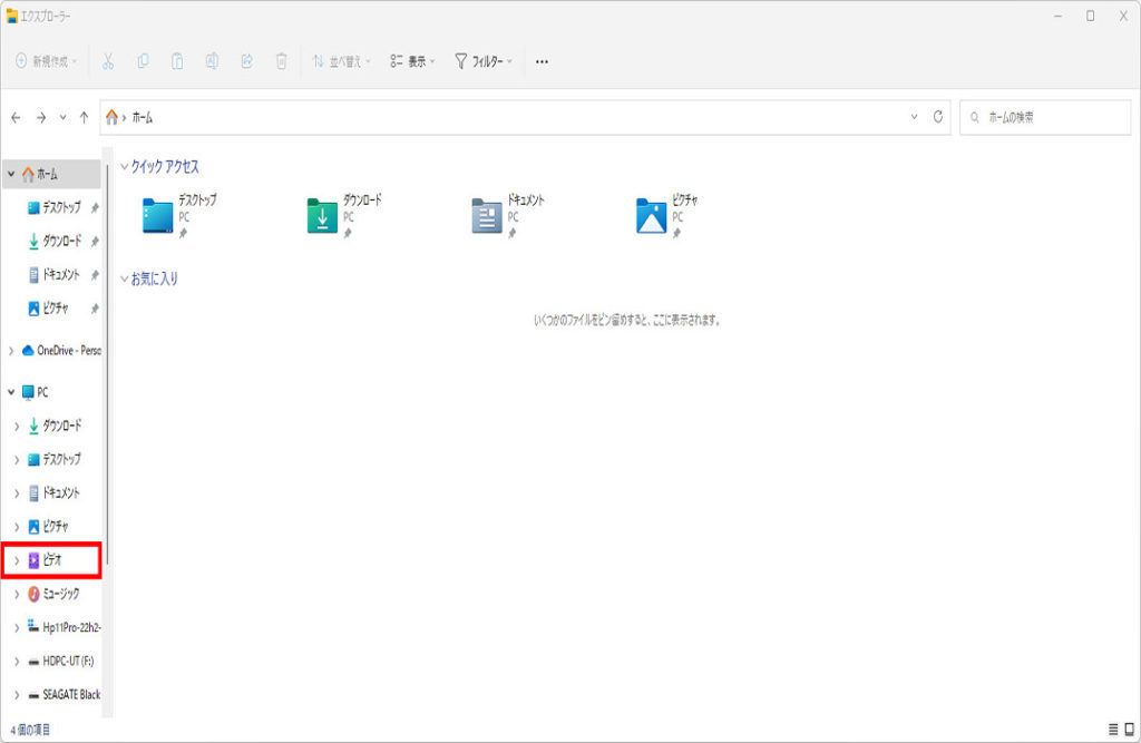 2 左メニューのビデオフォルダーをクリックします。