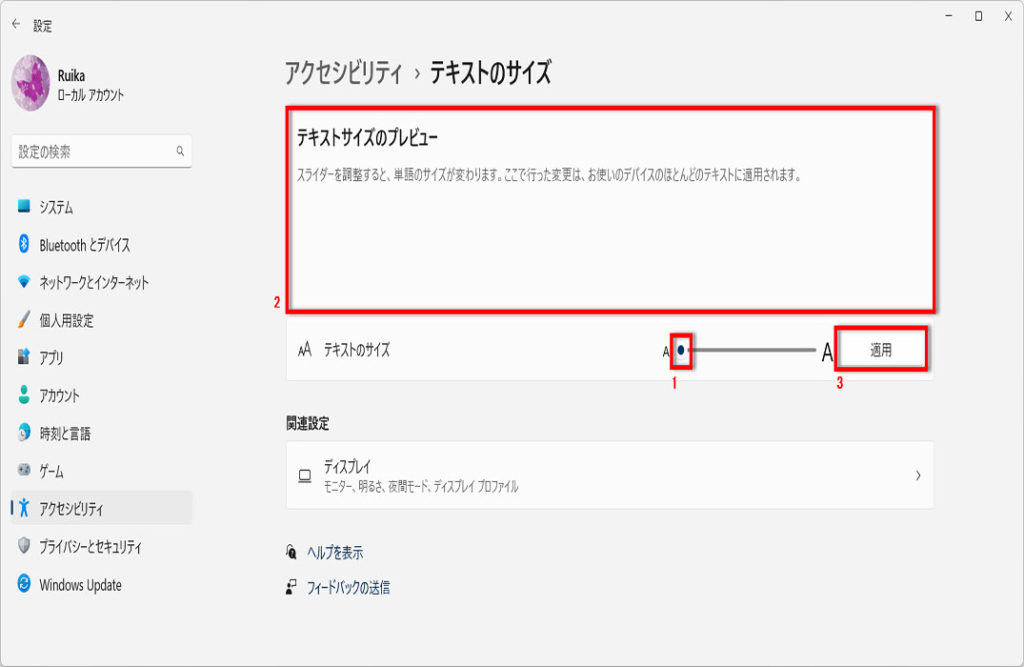 Windows10でアプリ、システム全般のテキストサイズを変更する方法