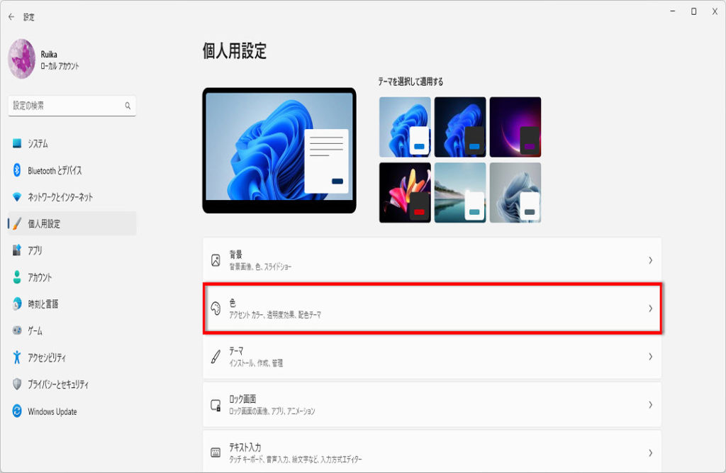 「個人用設定の色」画面の右上の「×」をクリックして閉じます、操作は以上です、